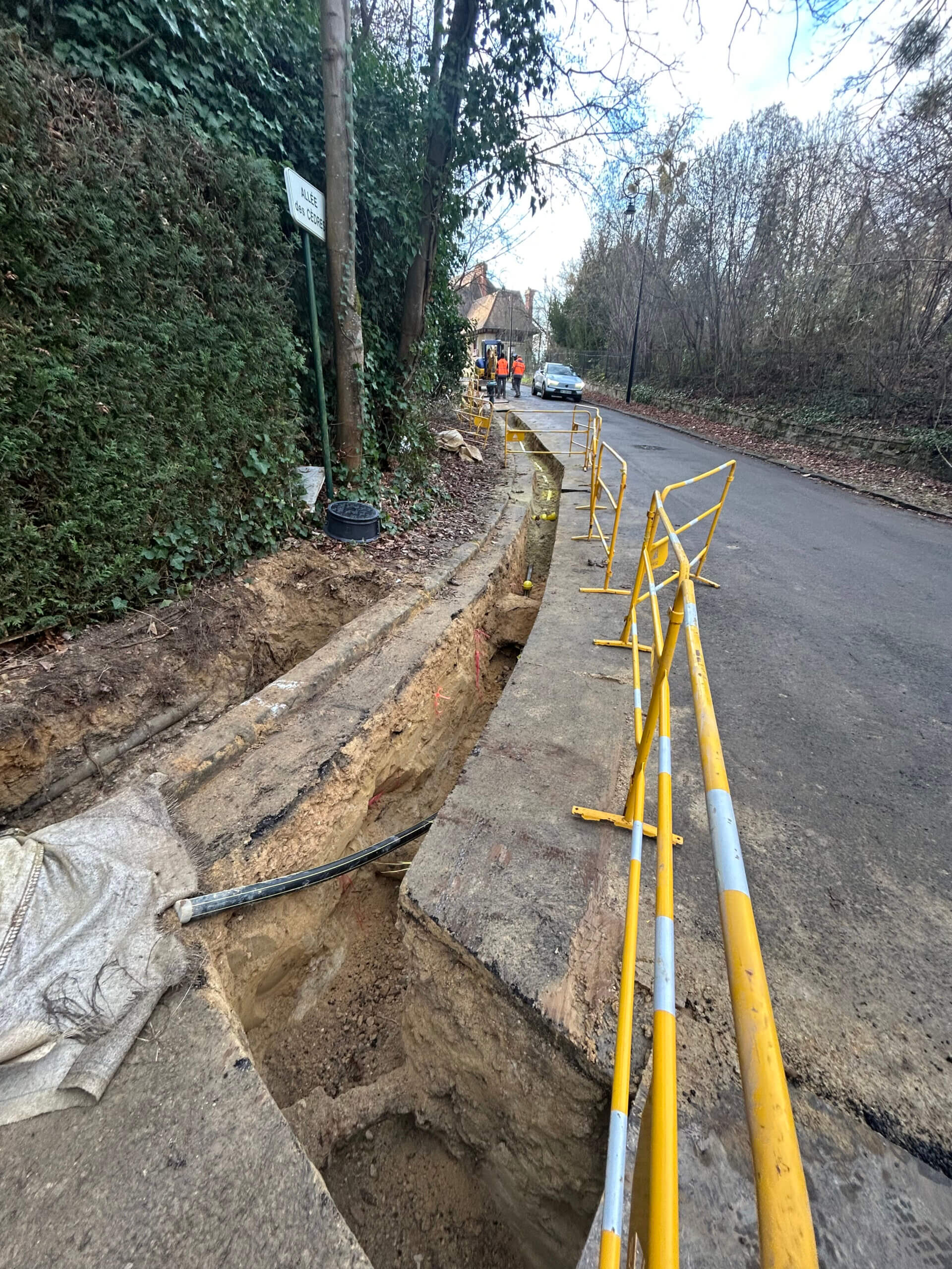 Fin décembre 2025 Les tranchées ont été faites et rebouchées en attente de la réfection voirie qui ne sera possible qu’après les avis des opérateurs Enedis et Orange.